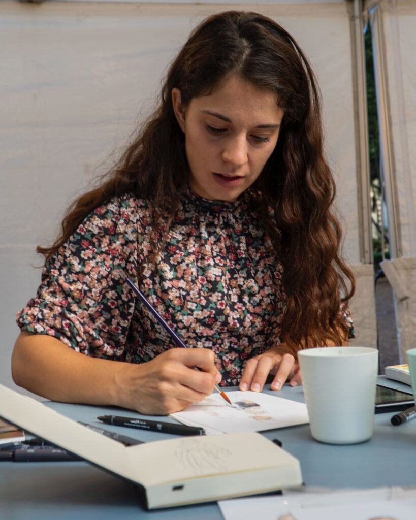 Saru Hernández es ilustradora. Le gusta escuchar los cuentos que susurran las olas para pintarlos en acuarela.
